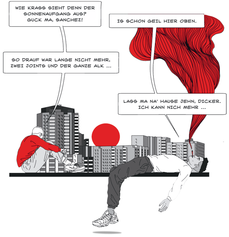 Beim Animieren eines kleinen Abschnitts einer Graphic Novel vermitteln wir den Betrachtern häufig einen ersten Einblick in die Geschichte. Dafür nutzen wir die vorliegenden Illustrationen. Schließlich möchten wir die Zuschauer für die Graphic Novel begeistern, ein Licht darauf werfen und sagen: ‚Schaut her, das ist außergewöhnlich!‘, und nicht die Ausgangsillustration verändern oder erweitern. Da wir selbst große Fans vom Stil der Graphic Novel sind und die Künstler verehren und respektieren, verwenden wir für unsere Animationen ausschließlich Grafiken und Illustrationen aus den jeweiligen Büchern.
