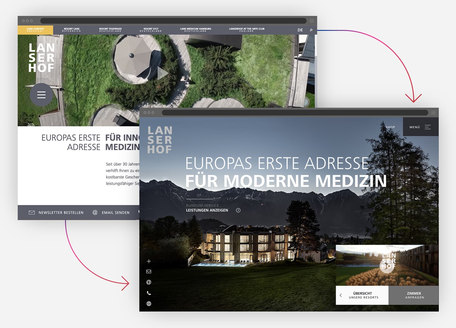 Die Webentwicklung ist seit Jahren dynamisch. Neue Entwicklungsangebote ergeben sich aktuell bspw. aus dem ‚Mobile first‘-Ansatz. Mit der neuen Lanserhof-Website auf WordPress-Basis präsentieren wir einen Rebrush und bieten ein modernes Redesign. Die Verwendung von WordPress bietet Lanserhof neben Sicherheit und Leistung eine einfache Integration weiterer digitaler Systeme, z. B. ihres neuen Reservierungstools.