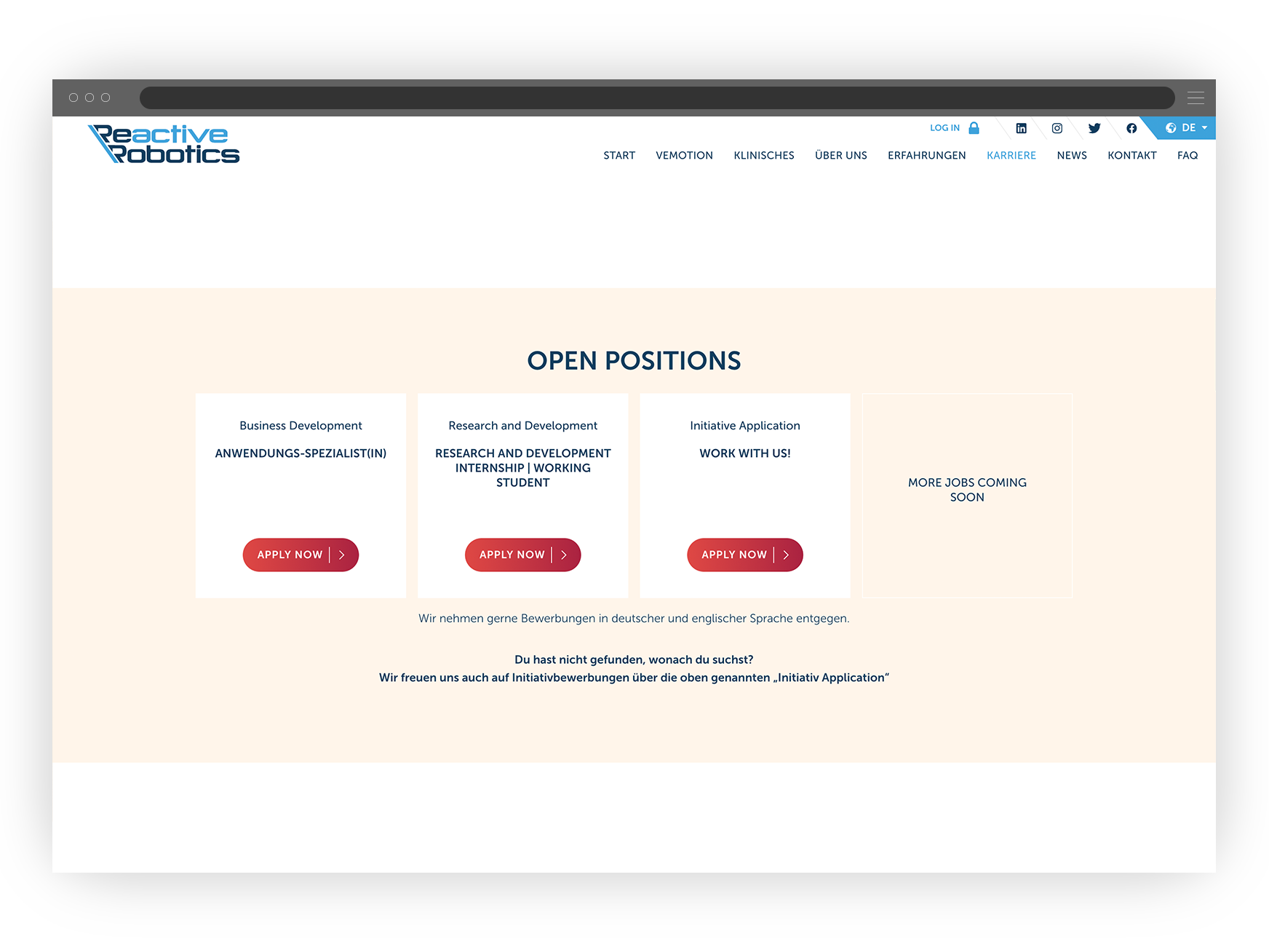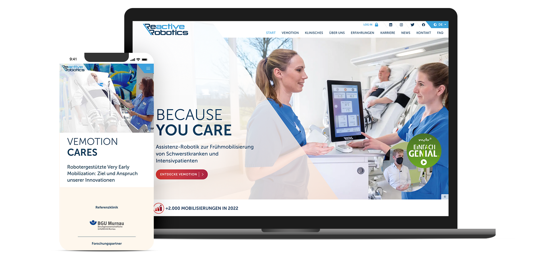 Die Pflegerobotik ist relativ neu. Ein Teil des Pflegepersonals und der Ärzteschaft nutzt es häufig zum ersten Mal. Um die Technik beim „First Touch“ so transparent wie möglich zu kommunizieren, hat unsere Full-Stack-Webentwicklung bereits bei der Konzeption des Mock-ups Klarheit und Expertise in den Mittelpunkt gestellt. Das Resultat ist eine Website mit mehreren Unterseiten, welche die Health-Care-Technik in den Mittelpunkt stellt.