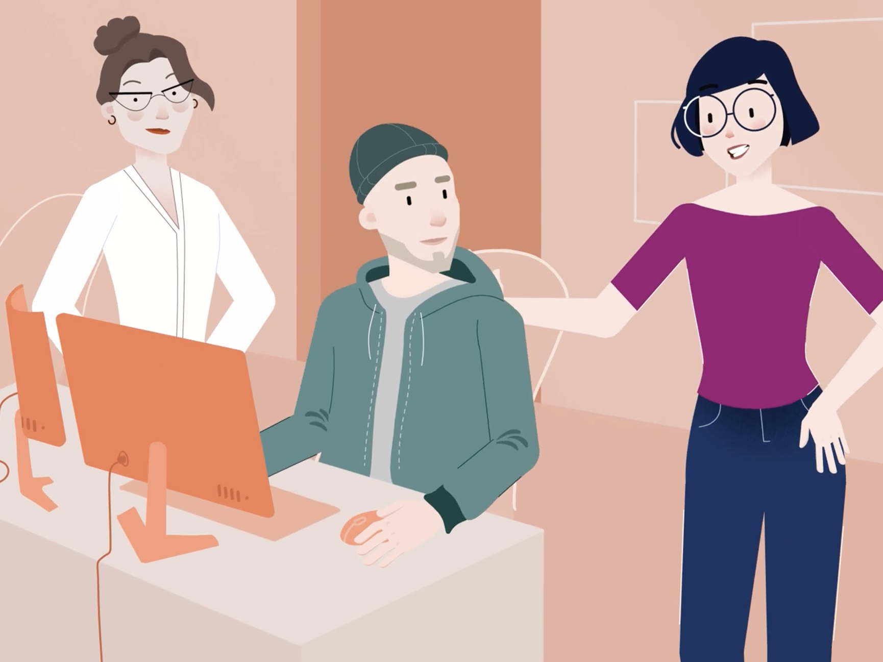 Um die Tipps so eindrücklich wie möglich zu transportieren, entwickelte unser Animationsstudio zunächst eine unterhaltsame Storyline um die einzelnen Tipps. Da es sich bei der Zielgruppe um Agenturen und Verantwortliche im Bereich Unternehmenskommunikation handelt, schrieben wir eine Narration um eine fiktive, aber dennoch ziemlich charakteristische Erklärvideo-Agentur.